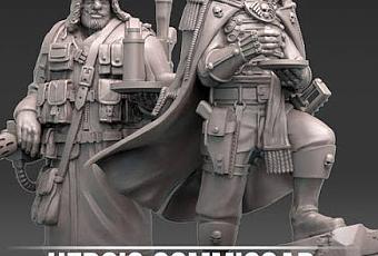 El Poderoso Crom, que es quien ha visto esto, se ha quedado encantado con este pack que bajo el nombre de Heroic Commissar & Officer's Aide, tenemos nada mas y nada menos que a Ciaphas Cain y su fiel ayudante Ferik Jurgen , los personajes creados por Sandy Mitchell para Black Library, por unos 30 euros con gastos de envío a España incluidos, lo cual no esta nada mal para dos miniaturas de resina, con buena calidad de acabados por lo visto en otras figuras (Eso que se ve en la imagen no es la figura acabada, son los diseños en 3D). Y ademas de la escala perfecta para poder usarlas en W40K. Y personalmente, me gusta mas que la sacaron hace años en BL como edición limitada, aunque fue se metal y tampoco fueran tan mala: