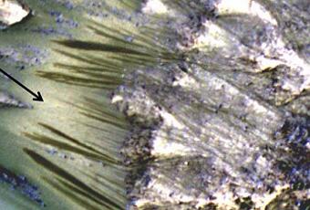 En las imágenes se ven marcas oscuras y alargadas que avanzan pendiente abajo cuando la temperatura del planeta aumenta.