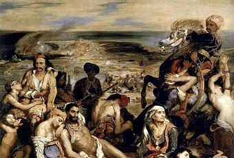 (Óleo La Masacre de Quíos, 1824, del pintor romántico francés Eugène Delacroix, Museo del Louvre.)