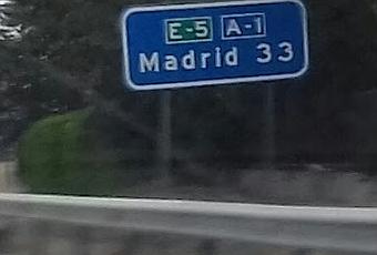 Entrando a Madrid por la A-1 nos encontramos con un cartel en el km 33.