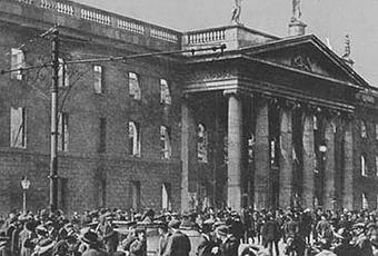 Para ello, los miembros de estos colectivos nacionalistas se encierran en la Oficina General de Correos de Dublín, considerado uno de los símbolos de poder del Imperio Británico en Dublín, se constituyen como Gobierno provisional y proclaman la República Irlandesa.