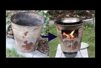Con pocos materiales reciclables podemos crear una excelente cocina a leña con un balde viejo como la estructura principal, luego con ciertas herramientas necesarias se efectúa algunas aberturas, se hace una base donde depositar las leñas y una especie de parrilla en la superficie para apoyar una sartén o una cacerola para realmente poder disfrutar de una sabrosa cocción con cualquier tipo de comida que podemos elaborar.