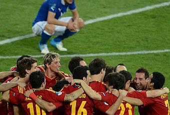 ¿Qué le dice un padre a su hija en un momento memorable? ¿Qué le dijo Fernando Torres a su hija Nora mientras ésta le sonreía contenta con una muñeca entre sus brazos? Italia fue eso, un vulgar juguete ante la mejor generación de futbolistas de la historia, la española, la única en levantar tres grandes torneos seguidos, dos Eurocopas y un Mundial, de Viena, pasando por Johannesburgo para llegar a Kiev. En la capital de Ucrania España logró su tercera Eurocopa -con lo que iguala a Alemania- llevándose por delante a una selección italiana con encanto durante el torneo y recatada en una final sin historia desde que antes del cuarto de hora Silva rematase de cabeza una jugada de arquitectos entre Xavi y Cesc, titular como falso 9. Jordi Alba, el jugador revelación del campeonato, marcó el segundo, mientras que Torres se apuntó el tercero y regaló el cuarto a su compañero en el Chelsea Mata, que no falló en el que era su segundo minuto en esta Eurocopa de Polonia y Ucrania. Una asistencia que le vale como valor añadido a Torres para ser Bota de Oro del torneo desempatando en méritos con los otros cinco jugadores que también han marcado tres goles. Que Mata no dispusiese de ningún minuto hasta el último instante del último día y que Llorente se marche a casa inédito es señal de que la calidad del grupo es inacabable, por más que se pueda discutir que Del Bosque no recurriese a ellos. El técnico salmantino se ha cansado de las polémicas sobre la idoneidad de jugar con o sin nueve, de hacerlo con o sin doble pivote, pero ha salido vencedor en el césped y en el vestuario como gestor de un grupo de amigos. Siempre silencioso como aquellos que mucho saben y poco hablan, Del Bosque ya ha igualado al alemán Helmut Schoen como único seleccionador en lograr un Mundial y de la Eurocopa. Aunque el entrenador de España mejora dicho palmarés, pues además cuenta con una Champions, algo que no ha conseguido nunca ningún entrenador. Motta se rompeCuajó España un partido redondo, dominando desde el principio a una Italia a la que le faltó malicia –“y carácter”, precisó Bonucci– y le sobró Casillas, preciso como un cirujano para birlarle de la cabeza un balón a Balotelli o para frustrar un tiro a bocajarro de Di Natale, segundo refresco de Italia, castigada también por las lesiones. Prandelli tuvo que cambiar a Chiellini por Balzaretti al inicio y Motta duró exactamente tres minutos tras entrar por Montolivo y romperse. Así que los italianos tuvieron que jugar con diez la última media hora, cuando Del Bosque empezó a mirar a su banquillo: Pedro entró por Silva, al que pareció no hacerle gracia el cambio, y Torres, quien lleva el 9 en el dorsal, por Cesc, el falso 9. Con un gol de Torres a pase de Xavi en Viena se concretó el primero de los tres títulos en cuatro años de esta generación irrepetible: el delantero corrió y se la picó por encima a Lehmann sin que Lahm pudiese atraparle. En Kiev asistente y goleador se pusieron de acuerdo para cerrar el partido con el tercer gol de la selección y de Torres, que seis minutos después no dudó en darle el gol a Mata, su mejor amigo en el Chelsea. Una pareja histórica, ya que hasta ahora ningún jugador había levantado una Champions y una Eurocopa en el mismo año. Torres, además, ha sido Bota de Oro del torneo con los mismos goles (3) que Balotelli, Cristiano Rolando, Mandzukic, Dzagoev y Mario Gómez.Los gestos El camino de la selección hasta la final de Kiev no se entiende sin su solidez defensiva, sin su línea de cuatro inalterable (Piqué y Ramos como pareja de centrales del presente y del futuro, Jordi Balda por la izquierda y Arbeloa por la derecha), sin el doble pivote, Busquets y Xabi Alonso ni sin Casillas, memorable en las contadas ocasiones que los rivales le han retado. Se acumulan sus actuaciones de libro, como su parada a Moutinho en la tanda de penaltis ante Portugal o su intervención voladora ante Rakitic ante Croacia, cuando España estuvo al borde de la eliminación en la primera fase. Nunca nunca selección campeona de un Mundial o una Eurocopa había encajado un gol, el que le hizo el primer día Di Natale tras un fallo defensivo y una asistencia de Pirlo, envuelto en lágrimas al final, mientras Buffon se abrazaba a Prandelli y Jordi Alba, hiperactivo e imparable durante la Eurocopa, se paraba a acordarse de quien siempre le han apoyado y mencionaba dos veces a Hospitalet, la ciudad que le vio crecer y formarse como jugador. Aunque para gestos, los de Cesc llevando una camiseta en la que se podía leer -[Dani] Jarque, Manolo [Preciado], [Antonio] Puerta y Miki [Roqué]-, Reina, poniéndose una del Betis con el nombre y el dorsal 26 de Miki Roqué, y Ramos, honrando de nuevo a su amigo Puerta. “Hemos sido nosotros desde el primer momento”, resumió Piqué, con un trozo de la red de la portería colgando. “Ojalá esto se pueda igualar será difícil”, reflexionó el capitán Casillas, “será difícil”. Seguro que Torres le vino a decir a su hija Nora que algún día, cuando fuese algo más mayor, entendería que ahí, con una muñeca entre las manos vivió un momento histórico, el tercer gran título consecutivo de la mejor generación de futbolistas de la historia. Casi nada. ESPAÑA 4: Casillas; Arbeloa, Ramos, Piqué, Jordi Alba; Xabi Alonso, Busquets; Silva (Pedro, m. 59), Xavi, Iniesta (Mata, m. 86); y Cesc (Torres, m. 75). ITALIA 0: Buffon; Abate, Barzagli, Bonucci, Chiellini (Balzaretti, m. 21); Marchisio, Pirlo, Montolivo (Motta, m. 56), De Rossi; Cassano (Di Natale, m. 46) y Balotelli. Goles: 1-0. M. 15. Cesc centra al punto de penalti, donde cabecea Silva. 2-0. M. 41. Jordi Alba define un contragolpe. 3-0. M. 84. Torres, de contragolpe. 4-0. M. 88. Mata, tras un pase interior. Árbitro: Pedro Proença (POR). Mostró la cartulina amarilla a Piqué, Barzagli.