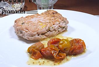 Para acompañar se ponen todos los ingredientes con los tomatitos menos la mostaza y el cilantro en una cazuela y se dejan cocinar hasta que los tomatitos estén hechos.