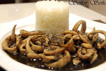 A mi cuñado y a mi nos encanta esta receta y la verdad que he puesto en la foto como acompañamiento arroz blanco, pero con patatas fritas nos gusta muchos más, eso sí, tienen que ser cortadas a cuadraditos! Con los calamares no valen que esten cortadas a lo largo jejeje no saben igual!! Bueno espero que os guste la receta de calamares en su tinta de mi madre porque todo lo ha hecho ella así que hoy se lleva ella todas las felicitaciones.