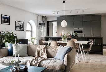 Comedor, cocina, salón y recibidor, todos elllos juntos en armonía. En este bonito apartamento nórdico ha optaron por eliminar tabiques y unir cocina y salón con una mesa de comedora modo de separación. Luminosidad que llegará a cualquier rincón. El salón en este caso, ya es grande de por sí, pero al no tener tabiques todavía se ve más amplio y su luz llega hasta cualquier pequeño rincón. Para no obstaculizar la circulación, el mobiliario se ha ubicado a uno de los laterales quedando lo más próximo a las ventanas. Inspírate!!!