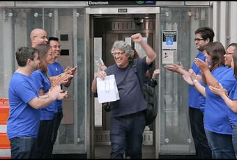 Se trató de una acción realizada por el grupo de bromistas profesionales Improv Everywhere que convirtieron un elevador subterráneo en la entrada de la falsa tienda colocando los logotipos de la empresa de la manzana.