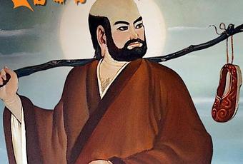 Se dice que mientras cruzaba las montañas para irse, fue visto por un funcionario chino llamado Songyun. A este le sorprendió ver a Bodhidharma con un zapato colgado de su bastón, una imagen peculiar que se quedó grabada en su mente.