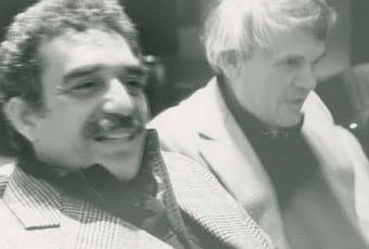 Gabo junto a Kundera.Sucedió tres meses después de que el ejército ruso ocupara Checoslovaquia; Rusia todavía no era capaz de dominar a la sociedad checa, que vivía inmersa en la angustia, pero (por unos meses aún) disfrutando de las libertades conquistadas durante la gran Primavera; la Unión de Escritores, acusada de ser el foco de la contrarrevolución, seguía conservando su editorial, sus revistas, y recibiendo invitados. Llegaron así a Praga, como invitados, tres novelistas latinoamericanos, Julio Cortázar, Gabriel García Márquez y Carlos Fuentes. Llegaron discretamente, en calidad de escritores. Para ver. Para entender. Para alentar a sus colegas checos. Pasé con ellos una semana inolvidable. Nos hicimos amigos. Poco después de que se marcharan fue cuando pude leer en galeradas la traducción checa de Cien años de soledad.