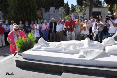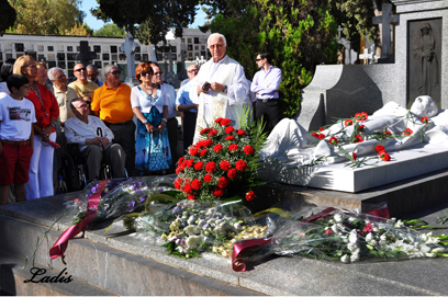 Más de un centenar de cordobeses han asistido al homenaje y ofrenda floral a la memoria de Manuel Rodriguez “Manolete” que la tertulia taurina “La Montera” ha organizado, ante el mausoleo del gran torero, en el cementerio de Ntra. de la Salud.