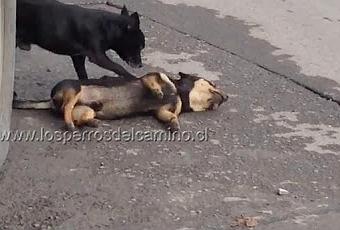 El video muestra a dos perros, uno inmóvil recién atropellado y el otro vivo que intenta revivir a su amigo. Quizás las imágenes para algunos no signifiquen nada, pero a otros les llegue al alma y piensen en sus perros tan amados.