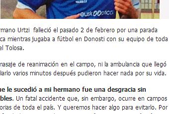 ¡La petición ha conseguido su objetivo gracias a 120.459 firmas!El fallecimiento de Urtzi Gurrutxaga, uno de los varios jóvenes futbolistas que dejaron su vida en un campo de fútbol, llevó a su hermano a iniciar una petición en la conocida plataforma Change.org para que al menos la gente se concienciase de la importancia de disponer de un desfribilador en un espacio deportivo. Mas de ciento veinte mil firmas y la rápida respuesta del Gobierno Vasco obligando a disponer de este aparato en espacios de uso público, son un gran triunfo para Enetz y su loable petición, ya que si bien no podrá recuperar a su hermano, si evitará en muchas ocasiones desenlaces semejantes. Un gran gesto, ahora solo queda esperar que en el resto del país no tengamos que esperar a que sea demasiado tarde para tomar medidas.NOTICIAS DE GUIPUZKOA: Euskadi cuenta ya con 698 desfibriladores -368 en Bizkaia, 198 en Gipuzkoa y 120 en Araba- a falta de mes y medio para que venza el plazo fijado por el Gobierno Vasco. Un decreto del Departamento de Salud estableció el pasado febrero la obligatoriedad de instalar desfibriladores automáticos o semiautomáticos en espacios de uso público donde concurran muchas personas. Esta decisión vino motivada tras la repentina muerte del joven Urtzi Gurrutxaga en un partido de categoría regional. Tras el deceso, su hermano Enetz impulsó una iniciativa a través de la plataforma change.org, que recibió la friolera de 7.200 firmas en tan solo 48 horas.Los especialistas confirman que esta herramienta salva muchas vidas ya que el desfibrilador es lo único que garantiza la supervivencia ante un paro cardíaco repentino. Lo corrobora el doctor Ángel Loma-Osorio, cardiólogo de la Unidad de Cardiopatías Agudas del Hospital de Araba que ha participado en la elaboración del código infarto puesto en marcha por Osakidetza. “Cuando se obstruye la arteria, hay que desbloquearla antes de 120 minutos porque, en caso contrario, puede resultar mortal. Todo el mundo ha visto ejemplos donde le dan un choque eléctrico a esa persona que ha caído desplomada y sobrevive. Por eso hay que tener el aparato cerca”, explica. “Tenemos muchos casos de pacientes a los que no les dolía el pecho, sino que alguien los vio desplomarse en un semáforo, una persona les empezó a dar un masaje cardiaco, alguien trajo rápidamente un desfibrilador y consiguieron recuperarlo”, añade.Es por este motivo que el consejero de Salud, Jon Darpón, destaca “la importancia de esta normativa que es un reflejo del compromiso del Gobierno Vasco con las personas y con la protección de su salud ya que la utilización de los desfibriladores puede ayudarnos a aumentar las expectativas de supervivencia de una persona ante una parada cardiorrespiratoria mientras llegan los servicios de emergencia”.Por ello, y por la conciencia social ante el problema de la muerte súbita, se adoptó esta medida que convirtió a Euskadi en una de las primeras comunidades en decretar la obligatoriedad de disponer de desfibriladores externos y semiautomáticos en los grandes establecimientos comerciales, individuales y colectivos. También es obligatorio en aeropuertos y puertos comerciales, estaciones de autobús o ferrocarril de poblaciones de más de 50.000 habitantes, y las estaciones de metro, tren o autobús con afluencia media diaria superior a 2.000 personas; establecimientos públicos, instalaciones, espectáculos y actividades recreativas donde entren más de 700 personas y en los centros educativos con aforo superior a 2.000 personas.Euskadi permite además que estos aparatos puedan ser utilizados por personal no sanitario en contacto con urgencias. Y es que los desfibriladores son una garantía de vida aunque la formación de las personas para su uso es una asignatura pendiente, tal y como pone de relieve el presidente de la sociedad española de Cardiología, José Ramón González Juanatey. “La formación es el punto clave y resulta necesario aprender unos normas básicas de resucitación”, afirma.“La probabilidad de sobrevivir a una parada cardiaca en la calle en España es del 5%. Cada año se producen unas 30.000, eso quiere decir que se salvan 1.500”, dice Ignacio Fernández, vicesecretario de la Sociedad española de Cardiología. Sin embargo, destaca allí donde los desfibriladores en lugares públicos son más abundantes y más accesibles, el porcentaje es muy superior. “El 30% en Ámsterdam, y el 60% en los colegios mayores de EEUU, donde todos, alumnos y profesores, han sido entrenados”, afirma este cardiólogo.Futbol Base y mas