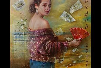 Y luego están los papelitos volando que imagino no será un homenaje a lo sucia que está la ciudad sino a las distintas fiestas de mayo, pues intuyo en uno de ellos una Cruz, en otro un patio y poco más… Aunque a lo mejor, lo que ha querido el autor es transmitirnos la situación que vive Córdoba, una ciudad parada, sin ideas, una ciudad sin proyectos de futuro y con un cogobierno, formado por PSOE e IU (con el apoyo de Podemos) que no sabe a donde ir. Como la mujer del cuadro, una mujer que parece pedirnos ayuda para que la guiemos, pues no sabe qué hacer. A lo mejor visto así le encontramos explicación, la mujer del cuadro representa a la Alcaldesa y su Cogobierno, una persona perdida y sin ideas para Córdoba.