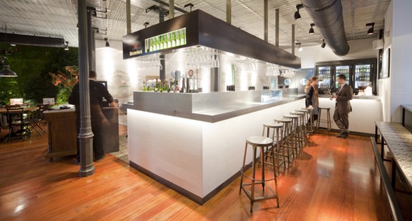Lab_ Matic es el estudio encargado de darle un nuevo aire a, La Musa Latina, taberna Madrileña. Destacar la influencia norte-europea para el diseño del mismo, con los blancos en las paredes, suelos en madera, pilares metálicos vistos y metal en mobiliario para dar un aire industrial. Vía: Diario Design