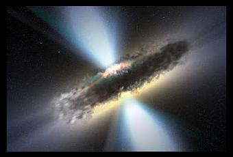 Aunque los agujeros negros son inherentemente oscuros (ni siquiera la luz puede escapar de su gravedad), también pueden ser algunos de los objetos más brillantes del universo. Y esto ocurre cuando el gas es atraído hacia la órbita alrededor de un agujero negro supermasivo, como el agua en un desagüe, la gravedad extrema crea una fricción y un calor tan intensos que el gas alcanza cientos de miles de grados e irradia tan brillantemente que puede eclipsar a todas las estrellas de la galaxia circundante.