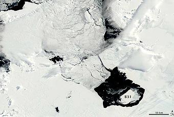 A principios de noviembre de 2013 un gran iceberg se separó de la parte delantera del glaciar Pine Island de la Antártida. De este modo comenzó un viaje a través de Pine Island Bay, una cuenca del Mar de Amundsen. La isla de hielo, llamada B31, es probable que pronto sea arrastrada por las rápidas corrientes del Océano Austral, aunque será difícil de rastrear visualmente durante los próximos seis meses, ya que la Antártida se adentra en la oscuridad del invierno.