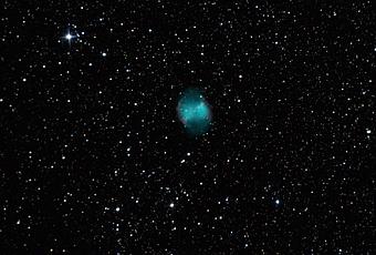 Tomas 60x30'' (ISO 1600), a foco primario, con la CANON 450D y el reflector Newton OMNI XLT-150 (f/5). Apilada con DeepSkyStacker 3.0, D.B.E. con PixInsight LE 1.0 y procesada con Photoshop CS5. Tomada el 7 de Julio de 2.011, desde Valdetorres de Jarama (Madrid).M27, se encuentra en la constelación de Vulpécula, unos 3º al norte de la estrella γ Sagittae (punta de la Flecha). Su diámetro aparente (8 min.) y su luminosidad (m.a.: +7,4), la convierten en una de las nebulosas planetarias más conocidas y fáciles de observar.