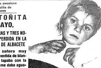 El 29 de Diciembre de 1979 la niña Antoñita Tamayo, de 4 años de edad, se perdió en un monte cercano a su pueblo. Inmediatamente los padres alertaron a la Guardia Civil, que con la ayuda de voluntarios del pueblo y perros la buscó durante tres días, hasta que la niña apareció sana y salva caminando por entre los árboles, el 1 de Enero de 1980. Cuando fue llevada al hospital, Antoñita dijo: "Una señora muy guapa y rubia que llevaba un manto venía todas las noches y me daba de beber; no me decía nada, solo me daba de beber y me tapaba con su manto que me daba mucho calor". Durante su estancia en el hospital, la niña dijo que la mujer que se le apareció "se parecía al ángel" del belén que había puesto en el centro hospitalario. Hoy en dia Antonia recuerda estar en el monte, abrir los ojos, ver estrellas y echarse a llorar. Adoptó como "casa" el abrigo de dos viejos árboles: un Enebro y una Sabina, y pasó mucho frío, pero siempre acompañada de aquella mujer rubia que la protegio y alimentó. El caso de Antonia Tamayo fue narrado por revistas como "Hola","Semana" y otros muchos medios de comunicación. Actualmente ha participado en medios de comunicación narrando de nuevo su historia.