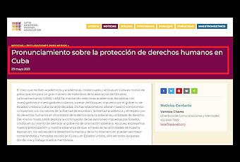 Red de Intelectuales, Artistas y Movimientos Sociales en Defensa de la Humanidad se ha pronunciado sobre una preocupación de LASA, (Asociación de Estudios Latinoamericanos) sobre la protección de los derechos humanos en Cuba. LASA ha emitido una declaración manifestando su preocupación por el “trato que reciben académicos y académicas, intelectuales y artistas en Cuba”. A renglón seguido dice, sin embargo, que esa institución “ha mantenido relaciones académicas duraderas con investigadoras e investigadores cubanos” a pesar del bloqueo impuesto por el gobierno de Estados Unidos.