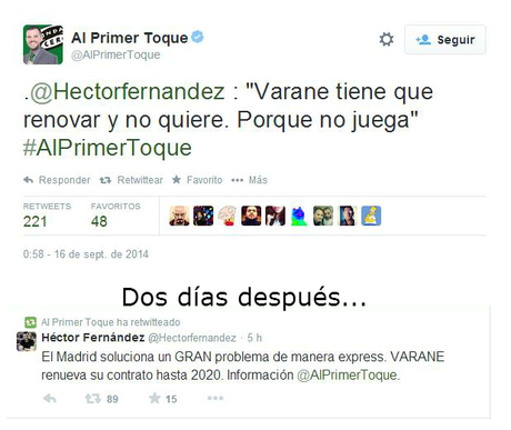 Hector Fernández adelantaba el día 16 que Varane no iba renovar: