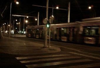 Prado de San Sebastián, 23:45 horas. Parada del Metrocentro, el tranvía de Sevilla. Comenzamos la cobertura de la jornada nocturna de la Huelga General del 29-M.