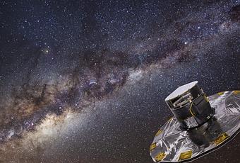 Gaia con la Vía Láctea de fondo. Crédito: ESA/ATG medialab; Fondo: ESO/S. Brunier.