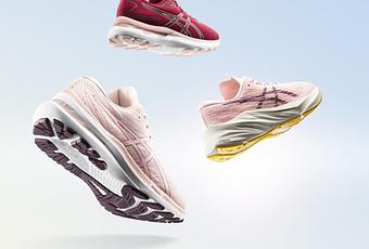 Las zapatillas GEL-NIMBUS™ 24 y GEL-KAYANO™ 29 de la colección han sido diseñadas para satisfacer las necesidades de las corredoras. Esto incluye alturas de suela ajustadas, materiales más suaves y tecnología TRUSSTIC™ espacial para apoyar a las corredoras en su fluidez de zancada.