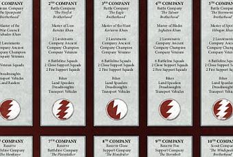 Vamos a empezar el dia con dos imágenes sacadas de los suplementos del Codex de Marines Espaciales para Cicatrices Blancas y Ultramarines. Son los organigramas de los capítulos, actualizados con los últimos movimientos e incorporaciones de Primaris. No dejan de tener su interes, sobre todo si se mira en ediciones pasadas como eran esos organigramas y la división por compañías.