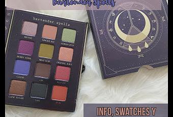 El leitmotiv de esta paleta, más que original me parece, sinceramente raro. Se supone que es un "libro de hechizos" (de ahí su diseño en tonos oscuros, con símbolos algo ocultistas e incluso un lazo para cerrarla a modo de libro antiguo) pero luego su nombre hace alusión a un "barman", de modo que literalmente es un "Libro de hechizos de un barman" y por eso los nombres de las sombras hacen alusión a combinados.Raro, pero mira, a mi lo que me gustaron fueron los tonos.