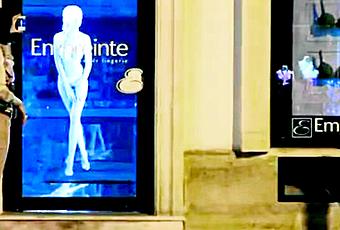 Imágenes tridimensionales sustituyen a los maniquíes. Cada vez son más las marcas que apuestan en su publicidad por cosas como la holografía, el mapping y la RA. Estamos a punto de ver una auténtica revolución en la publicidad. Esta semana hemos podido ver ejemplos de publicidad activa en los interiores de los vagones del metro. Un ejemplo de lo que viene: pantallas digitales en tiendas. El mapping supone la proyección de una animación sobre superficies reales para efectos artísticos.