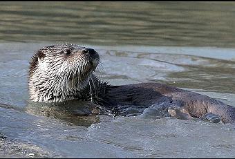 Descripción. La Nutria es uno de los mamíferos de nuestro cursos fluviales con cierto simbolismo. Difícil de observar, sin embargo se identifica con gran facilidad. Con una longitud superior a un metro y un peso que puede superar los 10 Kg., posee un cuerpo cilíndrico y alargado, con unas patas relativamente cortas, con membrana interdigital, y una cola larga, gruesa y cilíndrica, salvo en su base que es aplastada. La cabeza es ancha, aplanada y en la que apenas se diferencia el cuello. Los orificios nasales, los ojos y sus pequeñas orejas se encuentran alineados hacia la parte superior de la cabeza, lo que facilita que asomen en la superficie cuando nada con el cuerpo totalmente sumergido. Tiene unas largas vibrisas o “bigotes” en el hocico, mentón y ojos. Los machos son algo mayores que las hembras. La coloración es parda o marrón salvo la garganta y parte del pecho que es clara.