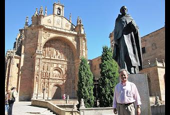 (Foto: Me encanta la fachada de San Esteban, el convento que acogió a Colón para conversar sobre su proyecto y el lugar donde se formaron legiones de misioneros para América o enseñaron maestros como Vitoria. ¡Mi Salamanca!)