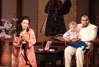 Es una representación que tiene tras de sí una largo recorrido. David Belasco, dramaturgo y productor teatral estadounidense creó una obra para teatro inspirada en el libro de Pierre Loti, Madame Chrysanthéme. En esta obra está basada la ópera con música de Giacomo Puccini y libreto de Giuseppe Giacosa y Luigi Illica. Pero esta función no se creó tal cual la vamos a poder ver hoy. Ha sufrido cuatro transformaciones hasta llegar a la actual versión, en tres actos, que fue estrenada el 17 de febrero de 1904 en La Scala de Milán.