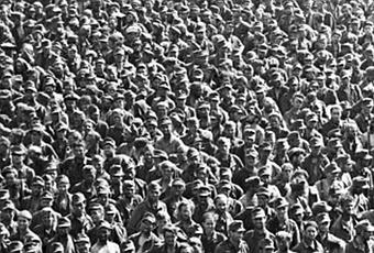 Columna de prisioneros alemanes en Moscú, a mediados de julio de 1944.