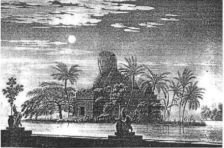 Diseño del escenario de la ópera La flauta mágica de Mozart con símbolos masónicos, realizado por el arquitecto alemán Karl Friedrich Schinkel alrededor de 1815.