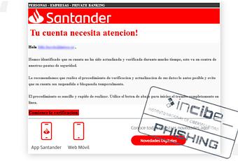 El 'modus operandi' de los ciberdelincuentes es bastante común: comienza con el envío de correos electrónicos fraudulentos de tipo "phishing" que tratan de suplantar a la entidad financiera Banco Santander. En dichos correos se utiliza como excusa el realizar un proceso de verificación o actualización de datos para evitar el bloqueo o suspensión de la cuenta.
