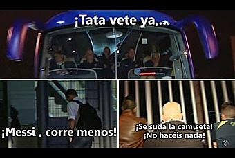 La escena se volvió a repetir. Al igual que sucedió tras la derrota liguera en Granada y también tras la eliminación en Champions, un grupo de seguidores se congregó en las proximidades del Camp Nou para cargar contra la expedición azulgrana a su llegada después de caer en la final de Copa ante el Real Madrid.Los jugadores fueron acusados de "mercenarios", de "no dar la cara" y de "no sudar la camiseta". No se libró ninguno. "Messi, c...", se escuchó con rotundidad. Martino tampoco franqueó los insultos. "Tata dimisión", corearon al unísono los presentes. Bajo firmes medidas de seguridad, con dos furgones policiales desplazados hasta el recinto azulgrana, el incidente no pasó a mayores.