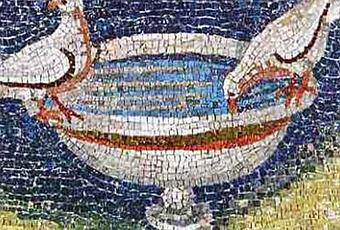 y desciende en lengua de fuego a los Apóstoles en Pentecostés ( Lc. 3,16). Alude al Espíritu Santo vivificador o al Alma del cristiano difunto que sube al cielo (la paloma "sin hiel” que se dirige al Cielo, según Tertuliano).