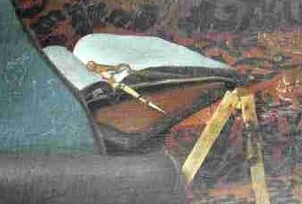 Interesa destacar como la ciencia es representada con un compás y con una pantómetra, el compás de proporción que Galileo da impulso hasta convertirlo es una herramienta obligada para ingenieros, artilleros y navegantes. La pantómetra, sector para los ingleses, es tanto n instrumento de cálculo como una base de datos trigonométrica y balística.