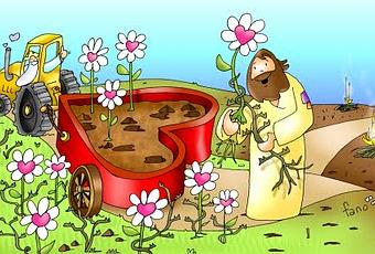 Mt 13 , 24-30Y les propuso otra parábola: «El Reino de los Cielos se parece a un hombre que sembró buena semilla en su campo; pero mientras todos dormían vino su enemigo, sembró cizaña en medio del trigo y se fue. Cuando creció el trigo y aparecieron las espigas, también apareció la cizaña. Los peones fueron a ver entonces al propietario y le dijeron: “Señor, ¿no habías sembrado buena semilla en tu campo? ¿Cómo es que ahora hay cizaña en él?”. Él les respondió: “Esto lo ha hecho algún enemigo”. Los peones replicaron: “¿Quieres que vayamos a arrancarla?”. “No, les dijo el dueño, porque al arrancar la cizaña, corren el peligro de arrancar también el trigo. Dejen que crezcan juntos hasta la cosecha, y entonces diré a los cosechadores: Arranquen primero la cizaña y átenla en manojos para quemarla, y luego recojan el trigo en mi granero”».