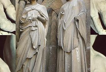 Fue esculpido junto a otras figuras en el periodo que va de 1230 a 1260. En la imagen que se puede visualizar en el enlace indicado, se encuntran dos escenas diferentes: la Anunciación, a la izquierda, y la Visitación a la drecha. La Anunciación o Salutación angélica la componen María y el arcángel Gabriel. Éste le anuncia que va a ser madre de Jesús. La más antigua referencia conocida a este episodio se encuentra en el Evangelio de Lucas.El arcángel Gabriel se vuelve hacia María y le sonríe, moviendo sus brazos, mientras la propia María permanece más rígida y estática, tal como sucedía en la escultura románica. En el grupo de la Visitación (a la derecha) María acude a visitar a su prima Isabel, que va a ser madre de Juan el bautista: en las dos mujeres observamos un enorme cambio. Si nos fijamos con detalle, podemos entrever una cierta referencia a la técnica de los paños mojados, tan característica de las obras fidíacas.En la escultura gótica se produce un incremento del naturalismo de las obras respecto a la etapa románica: los rasgos se individualizan, el movimiento se incrementa y el naturalismo se acentúa.