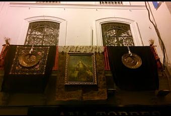 Nuestro hermano Pastor Vasco Domínguez, engalanó de esta forma su balcón, junto a diversos mantones de Manila –artesanía tan propia de nuestro pueblo–, y otros elementos, presidia el mismo esta pintura propiedad de la familia Salguero-Ruiz, con la cual de nuevo, la devoción más querida de los cantillaneros volvía a estar presente en la Ciudad, de una forma sencilla y espontánea, sin artificios, como se hacen las cosas naturales.