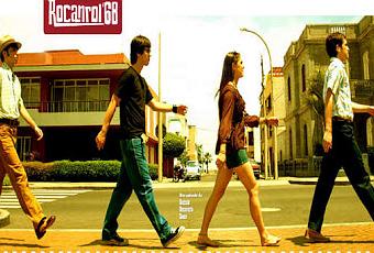 El cine peruano pasa por un buen momento gracias al cambio de producción que se ha dado en este ultimo año en particular. Es cierto que estamos lejos de ser el país con mayor numero de películas en la region pero se ve mucho mas trabajo a nivel argumental que en películas anteriores, la verdad es que se ha dejado de lado la historia erótica, tipico del cine latino en general y del peruano en particular, por otro molde de películas que con distintos tipos de resultados ha tenido el apoyo del publico, como por ejemplo "Asu Mare", uno de los mejores estrenos con respecto a taquilla del presente año. Algunos lo podran llamar moda otros que los peruanos estamos con algún tipo de nacionalismo que al igual que la comida nos hace consumir todo con el sello "Marca Perú", lo importante es que "El cine peruano esta dando la hora".Estrenada el pasado "Dia de la cancion criolla" (no digo Halloween por obvias razones), Rocanrol 68 es una pelicula peruana dirigida por Gonzalo Benavente Secco y protagonizado por Sergio Gjurinovic, Mariananda Schempp, Jesús Alzamora, Manuel Gold, Gisela Ponce de León, Pablo Saldarriaga, Leslie Shaw. Lo primero que resalta es que todo el elenco son amigos y se refleja en la cinta. De alguna forma se siente una pelicula hecha por patas para divertirse y que logra el objetivo en mas de una escena como por ejemplo en la que cantan el himno nacional, el mejor momento de la pelicula para mi. Los protagonistas son un trio de jovenes casi nerds con distintos sueños. Manolo (Sergio Gjurinovic) quiere ser director de cine, Guille (Jesús Alzamora) ama el rock mientras que Bobby tiene una obsesion por todo lo que tenga que ver con el sexo. Lo que marca el ritmo de la película tanto para Manolo como para Guille es la presencia de las dos chicas que se cruzan en su camino. Ambas representan todo lo que ellos quisieran ser y es cuando se confrontan ese cambio entre libertad sesentero con la represion de la epoca: el amor libre, la revolución femenina, el cine, el sexo, las guerrillas y estilo hippie son los temas que se anidan a lo largo de la cinta todo bajo el escenario del 68 y como fondo la música de Los York's, Los Saicos, Telegraph Avenue, Los Shain's, Traffic Sound, The (St. Thomas) Pepper Smelter y Black Sugar [1]. La musica es el sello, el romance y la comedia se acompañan perfectamente de todo los HITS y seguro para mas de un "joven del ayer": la nostalgia de una época dorada. La pelicula gana mucho con la musica y la interpretacion de personajes como Bobby o Bea (Gisela Ponce de León), pero se limita a solo mostrarnos una vista panoramica de las casas, un par de autos de la época o la ropa de colores. La historia es cliche, es el personaje casi perdedor que quiere ser lo que no puede que se enamora de la chica casi perfecta. Y los diálogos aunque hacen referencia a muchas aspectos de la historia son bastante forzados hechos con poca inteligencia por ejemplo el perro llamado "Laica" (el primer perro en la Luna) o el dialogo sobre el presidente "negro que podría haber en el futuro" quedan como simples anécdotas de un guion bastante regular. La historia fluye a su manera y al final solo quedan ellos Manolo y Emma como dos personas de apariencias y de sueños, el chico alcanza a la chica mientras que ella se descubre ante el. El romance le gana a la comedia y así termina la pelicula con aroma dulzón. La pelicula es un lienzo con un marco hermoso y nostalgico: la musica, lo demas puro cliche con ropa de colores.