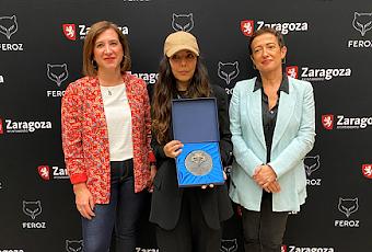 En el acto de entrega del premio también se ha anunciado que los Premios Feroz celebrarán su décimo aniversario en Zaragoza. Tras el éxito de la edición anterior, el Auditorio de la capital aragonesa volverá a acoger la ceremonia de entrega el sábado 28 de enero de 2023, gracias a la renovación del acuerdo entre la Asociación de Informadores Cinematográficos de España (AICE) y el Ayuntamiento de Zaragoza. Además de la propia gala, los Feroz conmemorarán sus primeros diez años con una ambiciosa programación de cine, series y exposiciones a lo largo de los próximos meses en la ciudad, cuyos primeros detalles de darán a conocer próximamente.“Es un placer volver a Zaragoza a celebrar no sólo los premios Feroz, sino también los eventos previos en los que siempre nos sorprende la cinefilia de su ciudadanía que llena todas las sesiones y encuentros con los cineastas, demostrando que su criterio cultural y crítico es altísimo”, confirma María Guerra, presidenta de la AICE. “Zaragoza es el ejemplo de una ciudad inquieta y abierta al diálogo multidisciplinar que ofrece el cine. En estos 10 años de vida de los premios Feroz la industria audiovisual ha evolucionado, y nosotros hemos tenido el honor de acompañar al cine y a las series en esa transformación y en su relación con el público. Zaragoza es el mejor escenario posible para esta celebración”. La vicealcaldesa de Zaragoza, Sara Fernández, presente en el acto, ha señalado que “es una gran alegría acoger un año más los Premios Feroz y continuar así con el éxito de la edición anterior; seguimos trabajando de la mano de la AICE en toda una programación paralela y en el Campus La Inmortal que celebramos en verano, lo que afianza la relación y el intercambio de experiencias entre el público general y los profesionales del mundo cinematográfico”. “El sector audiovisual es cultura y es economía”, ha proseguido Fernández, quien ha recordado que “el impacto mediático para la imagen y proyección exterior de la ciudad en la edición anterior fue valorado en 8,24 millones de euros”. “Zaragoza es una ciudad acogedora, amable y abierta, así que volveremos a recibir con afecto y cariño al sector, a los miembros de la AICE y a todos los visitantes que quieran compartir con nosotros el orgullo por la cultura audiovisual”, ha remarcado la vicealcaldesa zaragozana.La AICE es un grupo plural de más de 230 periodistas y críticos dedicados a informar sobre cine en televisión, radio, prensa e Internet de todo el país. Desde 2014 entregan los PREMIOS FEROZ® para destacar lo mejor de la producción audiovisual española del año. Además del Premio Feroz Zinemaldia, la AICE también otorga el Premio Feroz Puerta Oscura, que distingue al mejor largometraje de la Sección Oficial del Festival de Málaga y el Premio Feroz Cinema Jove al Mejor Cortometraje en el seno del festival del mismo nombre.En la foto, María Guerra, presidenta de la AICE, Sara Fernández, vicealcaldesa de Zaragoza y Laura Mora, directora de Los Reyes del mundo