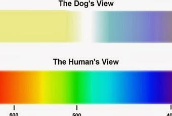 Los perros tienen retinas pobladas mayormente por conos, ven mejor en la oscuridad que los humanos, y su visión está orientada al movimiento. Sin embargo, dado que sólo poseen la décima parte de la concentración de conos que los humanos, los perros no perciben los colores al igual que nosotros.Los coloresLos perros reconocen dos colores, azul-violeta y amarillo, y pueden distinguir entre las tonalidades de gris. No pueden distinguir entre el amarillo, verde, anaranjado y el rojo. Además tienen dificultades para distinguir el verde del gris.