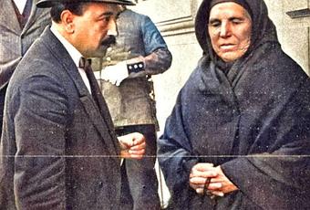 La pescadera Paulina Polidura, muy popular en Santander por su acendrada adhesión a la familia real, en Madrid para dar personalmente el pésame a SS. MM. por la muerte de la infanta María Teresa