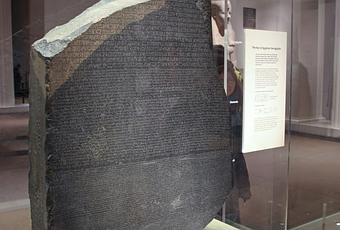 La piedra de Rosetta es un fragmento de una antigua estela egipcia de granodiorita, inscrita con un decreto publicado en Menfis en el año 196 a. C. en nombre del faraón Ptolomeo V.