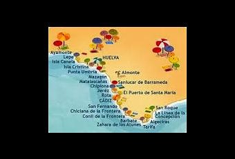 Destaca la belleza de sus espacios naturales protegidos: Doñana, Bahía de Cádiz, acantilado y marismas de Barbate, del Tinto y del Odiel, flecha de El Rompido, Laguna de El Portil, Marismas de Isla Cristina, etc. así como destinos importantes para el turismo cultural, como Baelo Claudia, cabo Trafalgar o los Lugares colombinoscomo el Monasterio de La Rábida, Palos de la Fronteray Moguer