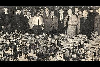 La producción de esa fábrica era para tres sectores de la economía argentina: el agro, el sector energético y el transporte. La planta ocupaba 300 hectáreas con más de 176.000 metros cuadrados de superficie cubierta. Los periodistas invitados contemplan un lote de motores del Fiat 1500.