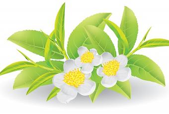 Esta imagen de vector ilustra la planta originaria del conocido té verde. Pertenece a la familia Theaceae y se conoce, botánicamente, como Camellia sinensis.